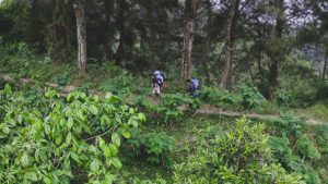 Nach Posten 3 geht es zuerst steil bergab, wobei Seile als Hilfe befestigt sind. Es ist ratsam, Handschuhe zu tragen, um die Hände beim Festhalten zu schützen. Danach folgt der Abschnitt, der Punggung Naga (Drachentück) genannt wird – ein schmaler Pfad zwischen hohen Gräsern, mit tiefen Abhängen auf beiden Seiten. Hier ist volle Konzentration nötig.