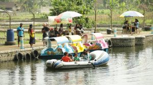 We can rent a duck boat; we just need to pay around Rp15,000 for 4 people. For Rp10,000 for 2 people, we can enjoy a rubber boat to paddle around the lake and enjoy the breeze.